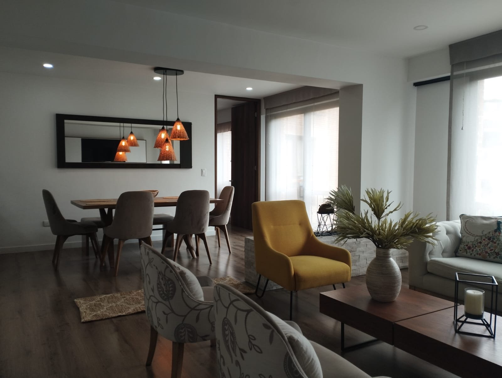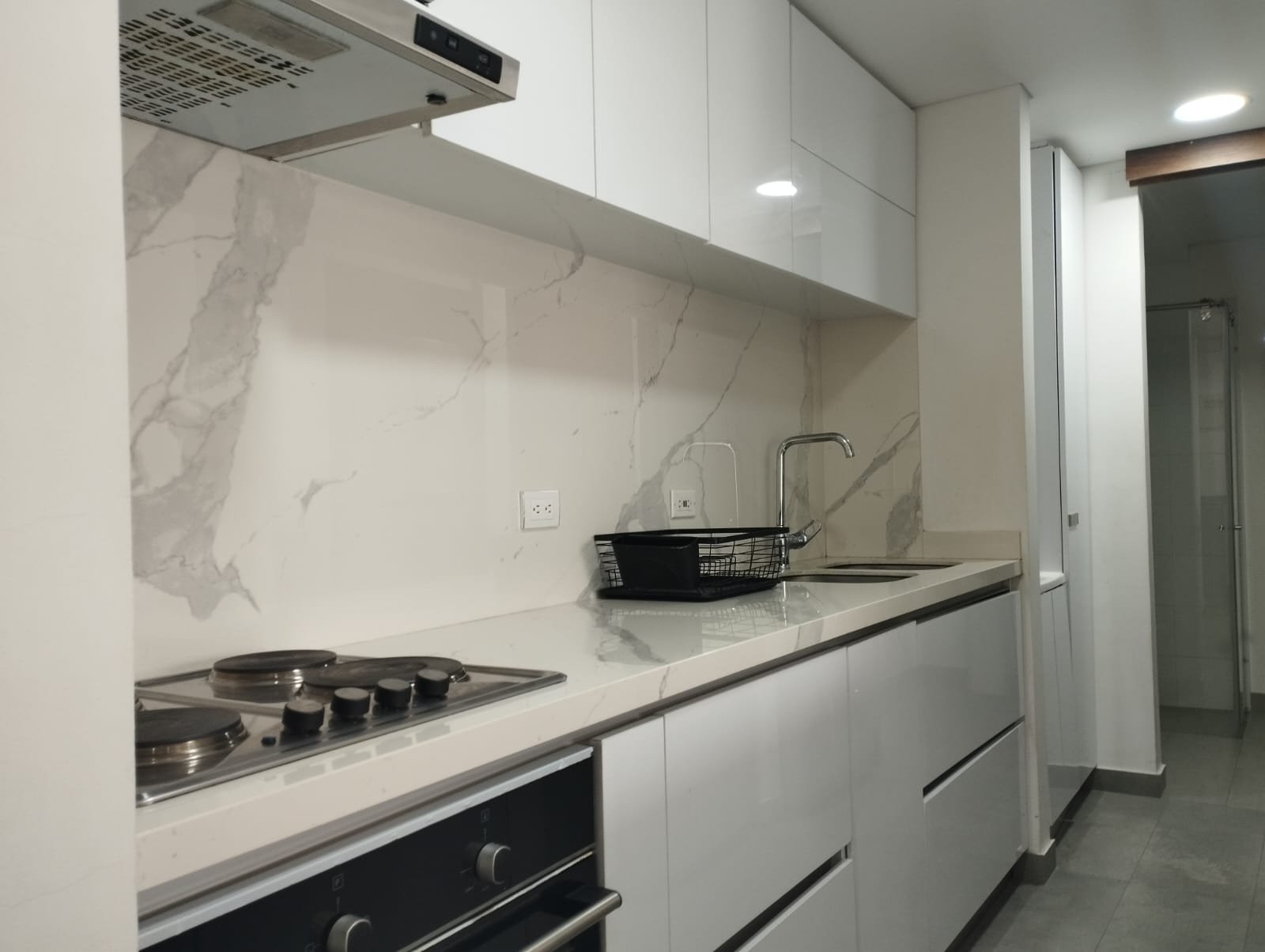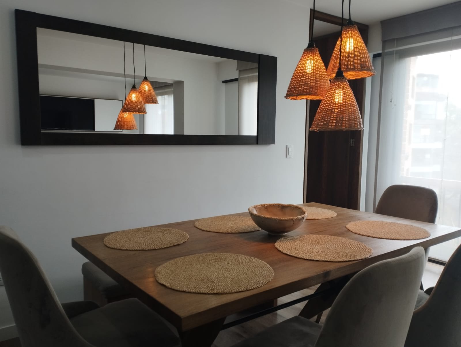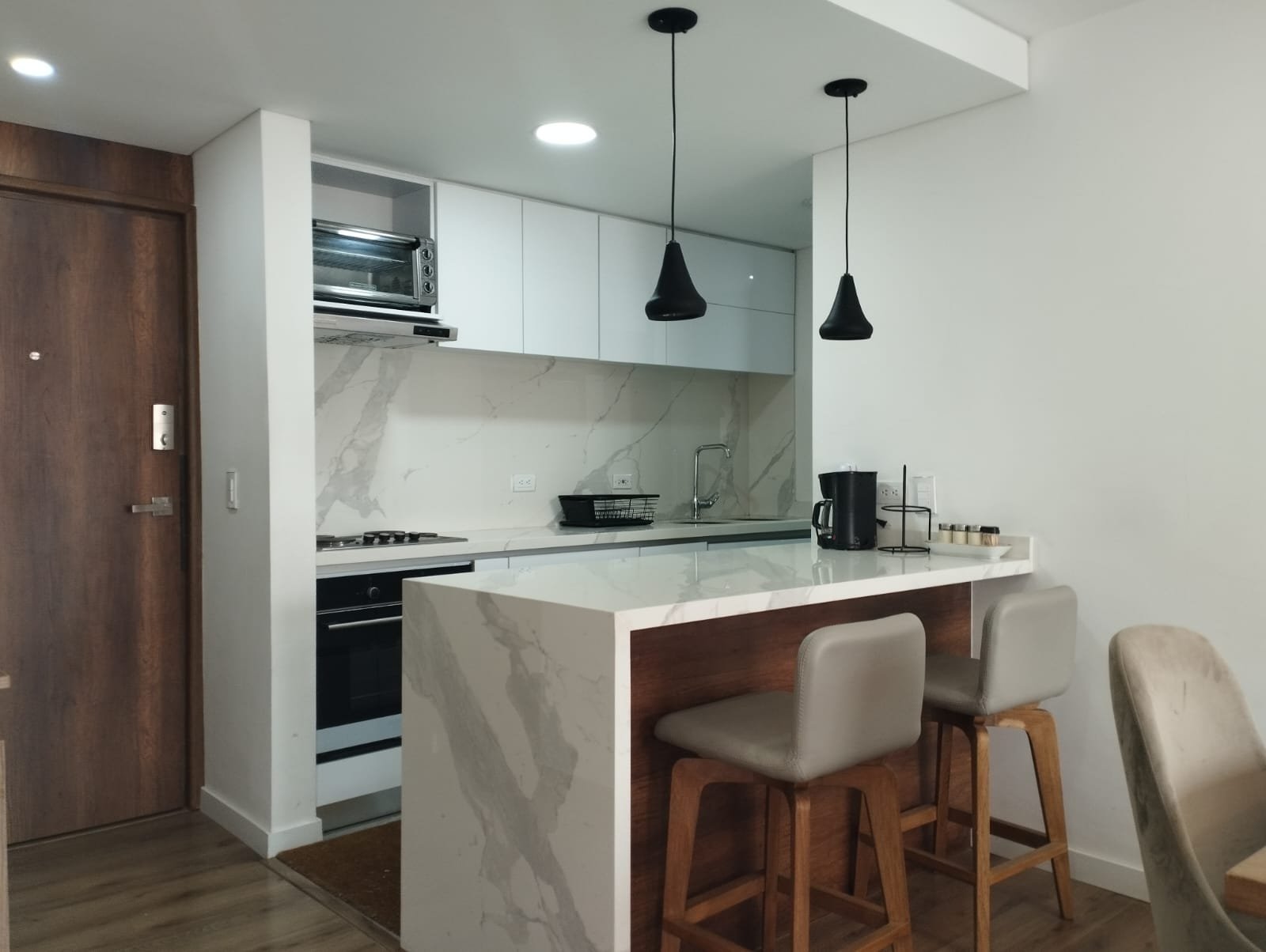 Hermoso apartamento amoblado para arriendo ubicado en el sector norte de la ciudad barrio La Carolina. Apartamento recién remodelado con excelentes acabados, cuenta con 2 habitaciones amplias, 2 baños, cuarto y baño de servicios, sala comedor, cocina tipo americana con barra tipo americana, Lavadora y todo equipado. El conjunto cuenta con áreas verdes, restaurante, Zona de café, Gimnasio, Spa, Zonas Coworking, en sector comercial y centro comercial. Valor incluido administración y servicios.