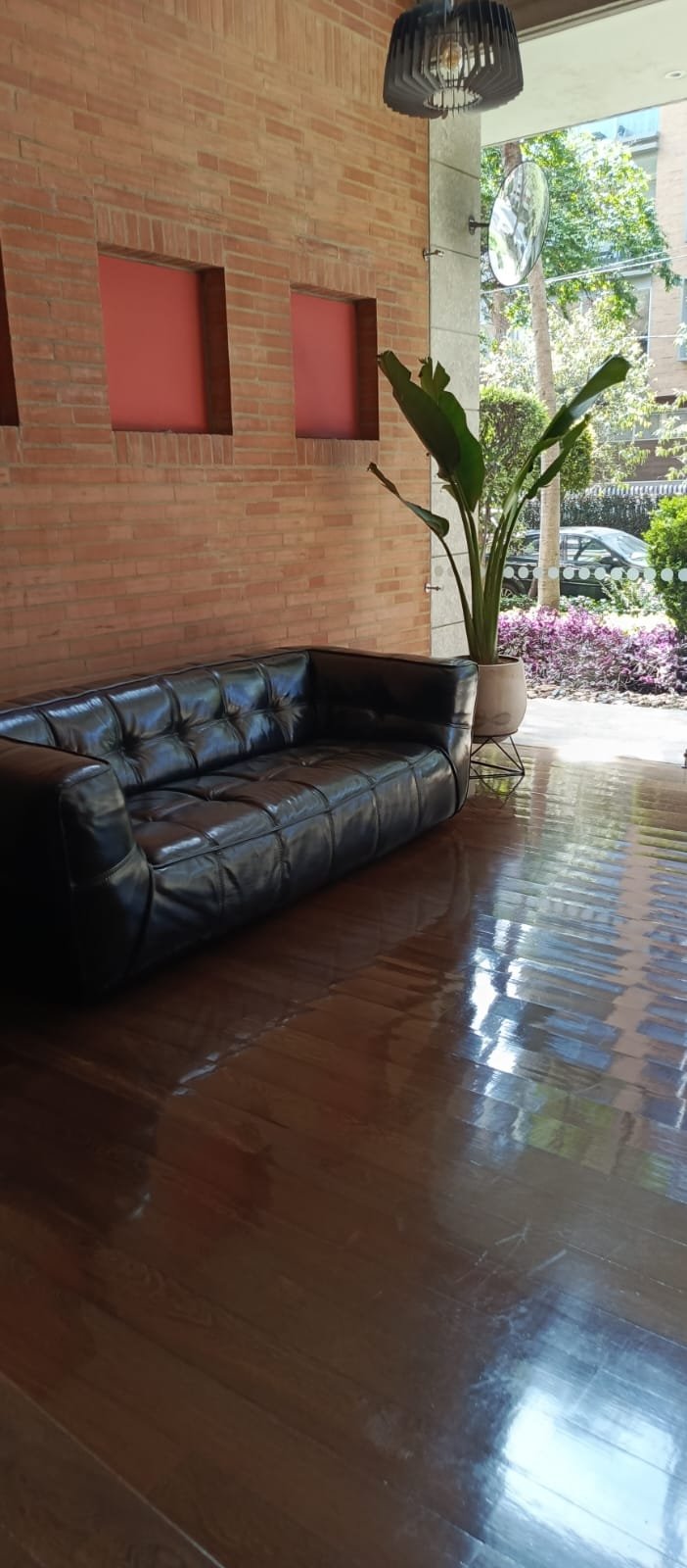 Arriendo Apartamento, ubicado en La Carolina, amplios espacios, luz natural, exterior en vía cerrada, finos acabados, piso 4, 154 mts, 3 habitaciones, 4 baños, cocina abierta al area social, comedor independiente de sala, balcón, zona de lavanderia, pisos en madera, 3 garajes y deposito. En el valor de canón esta incluida la administración.
